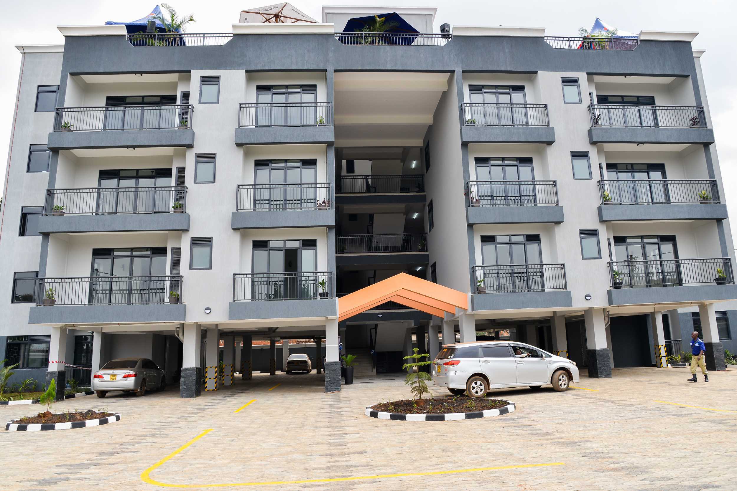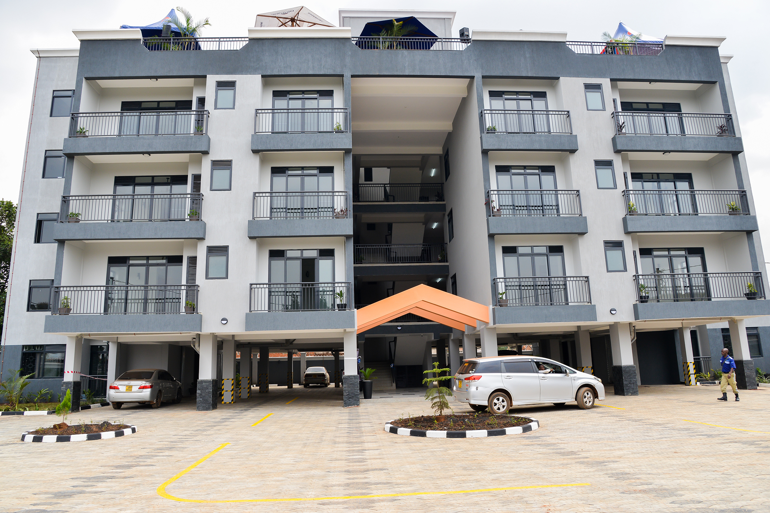 Residential 1 Bedroom apartments (32 units) These apartments have 1 bedroom, a spacious lounge with an open kitchen, wardrobes in the bedroom, water heater, and a balcony. To let at Ugx900,000/= 2 Bedroom apartments (6 units) Each unit has 2 spacious bedrooms, a combined sitting and dining room, an open kitchen, wardrobes in all bedrooms, water heater, 2 balconies, and laundry space. To let at 1,500,000/= Amenities The apartments come with CCTV cameras, full time armed security, fire exit, an open terrace, separate meters for water and power, ample parking space, laundry space, an electric fence, and fully installed DSTV, ZUKU, & STARTIMES dishes..